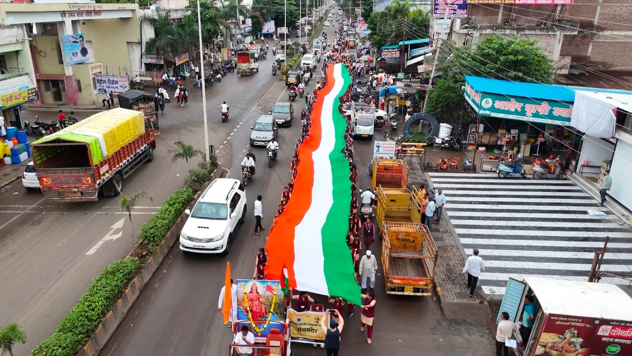 संगमनेरात ३००फूट तिरंगा पदयात्रा – हजारो विद्यार्थ्यांचा उत्स्फूर्त सहभाग